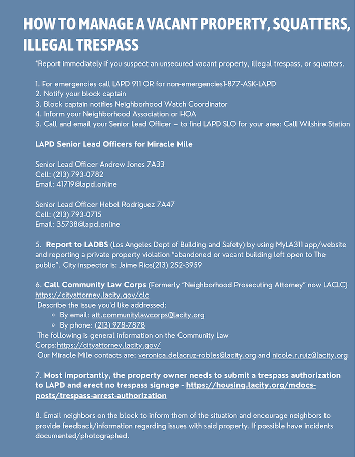 Neighbors – work together when your block has a vacant property and follow protocol below.