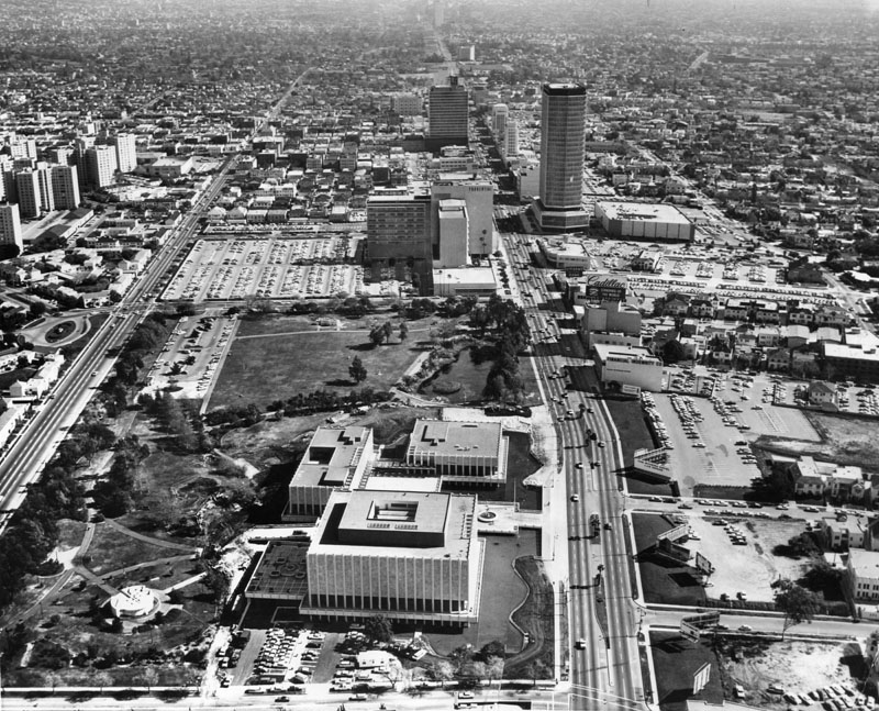 Aerial view of the Miracle Mile and Hancock Park, 1965