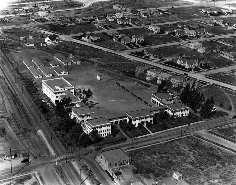 Aerial view of the Page Military Academy, 1201 S. Cochran Ave., circa 1920s