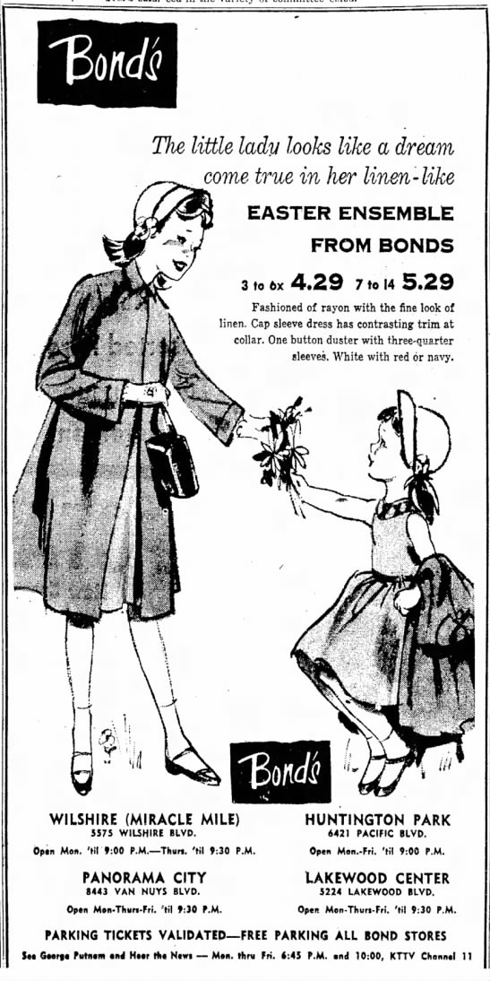 Bond Clothing ad, Van Nuys Valley News, April 11, 1957
