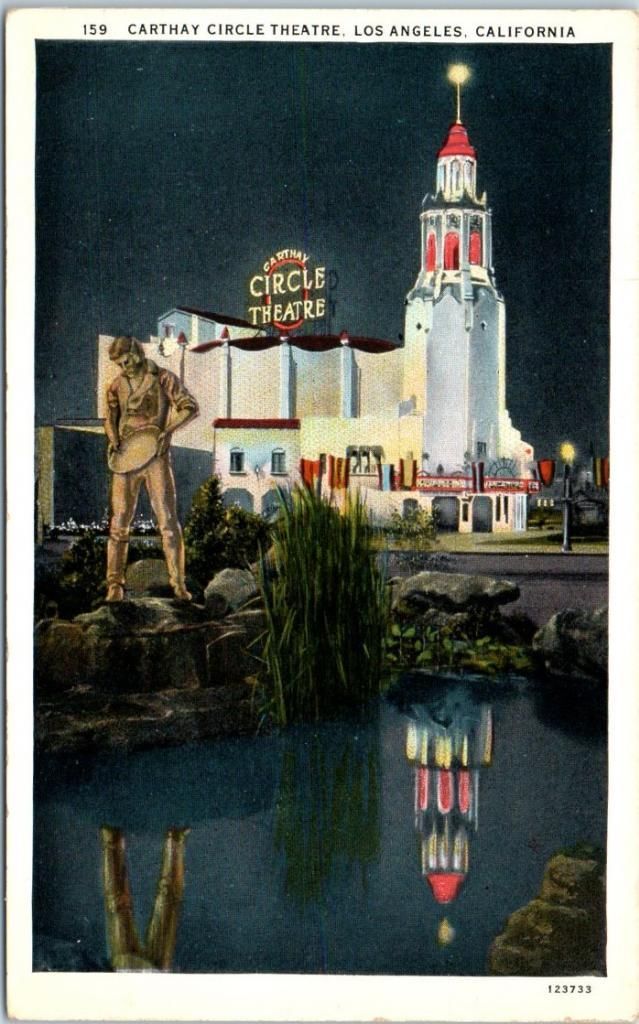 Carthay Circle Theatre (with Dan the Miner statue) postcard, circa 1931