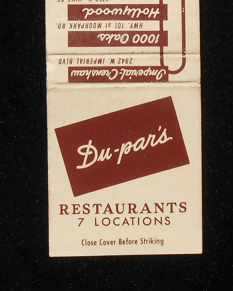 Dupar’s matchbook cover (front)