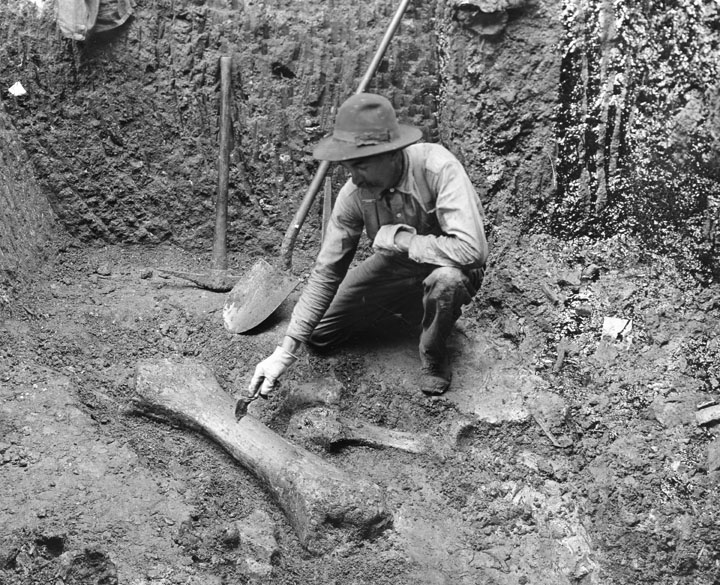 Elephant limb in tar pit ( E.S. Cobb, photographer), 1911