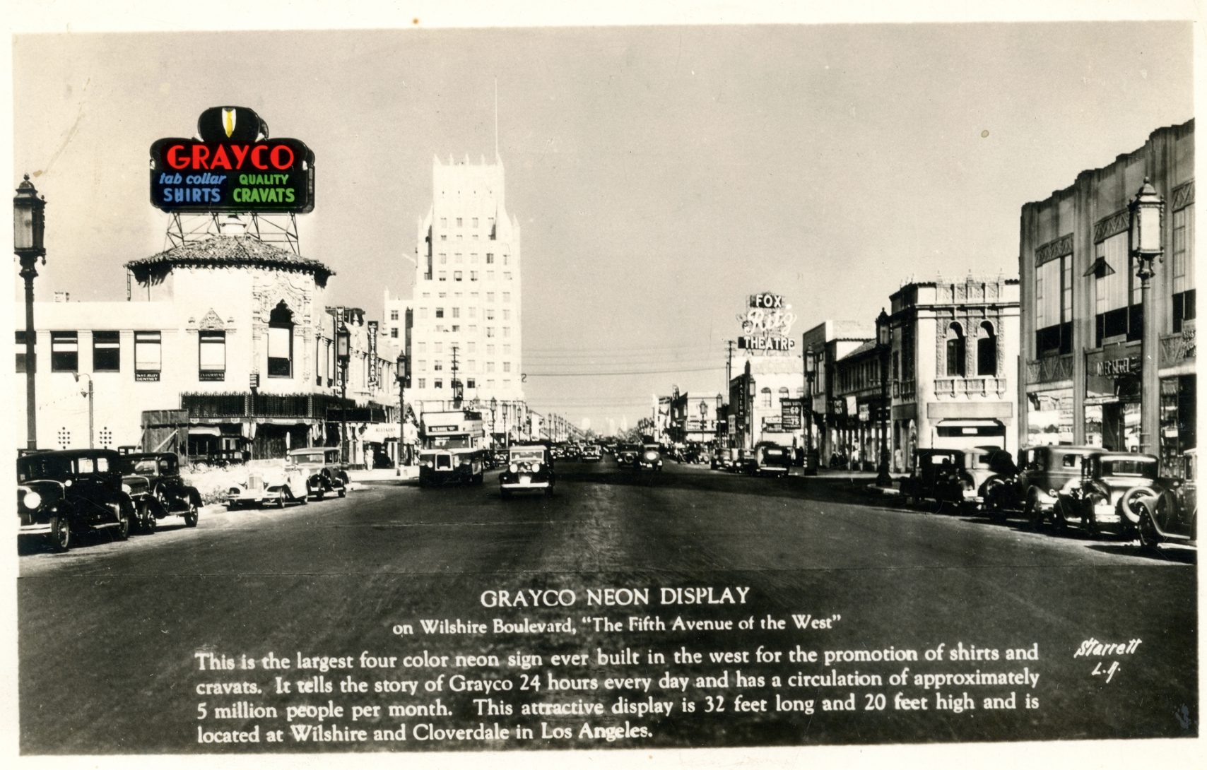 Grayco neon display postcard, circa 1935