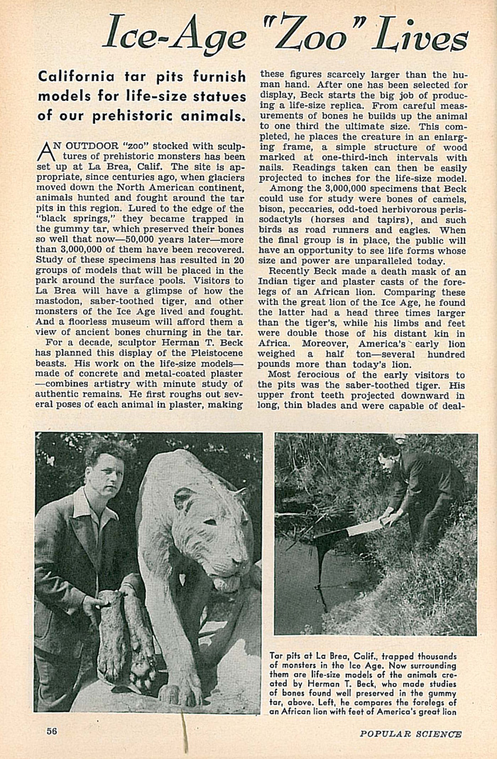 “Ice-Age Zoo Lives” – Popular Science, March 1944 (Page One)