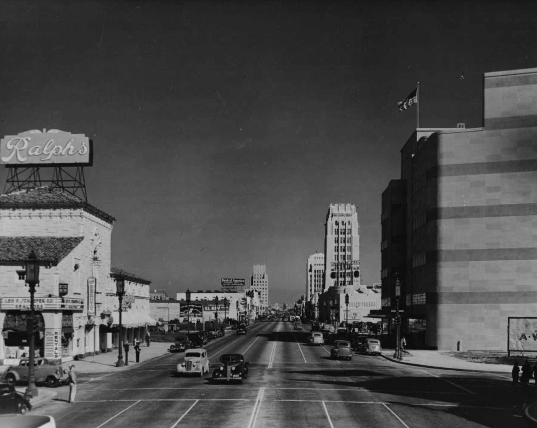 Looking east along Wilshire at Hauser Blvd., circa 1935