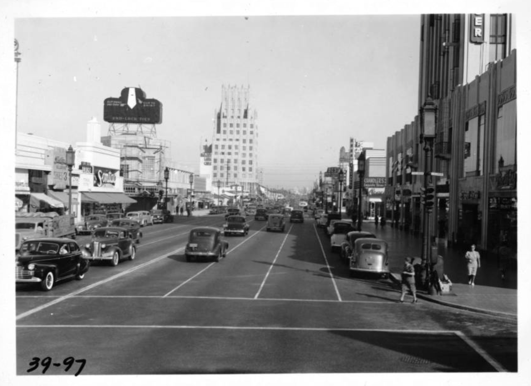 Looking east along Wilshire from Cochran, Los Angeles, 1939