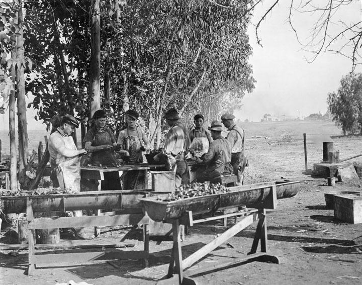 Men cleaning bones from tar pit (E.S. Cobb, photographer), 1911