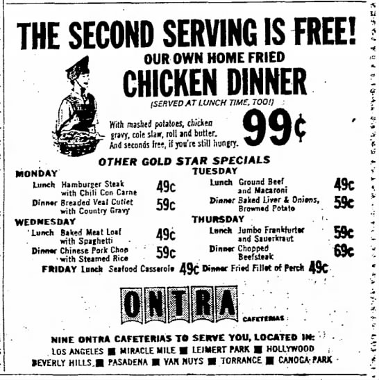 Ontra Cafeterias ad, Van Nuys Valley News, August 17, 1965