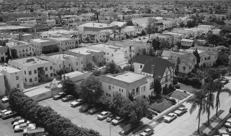 Panoramic view looking southeast from Wilshire and Cloverdale, 1983
