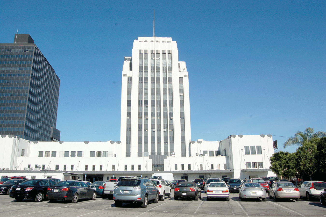 Contemporary view of the rear of Dominguez-Wilshire Building
