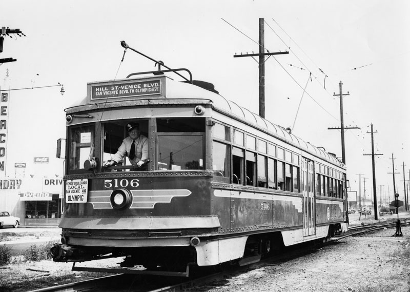 Streetcar at San Vicente Boulevard near Genesee Avenue, circa 1950s