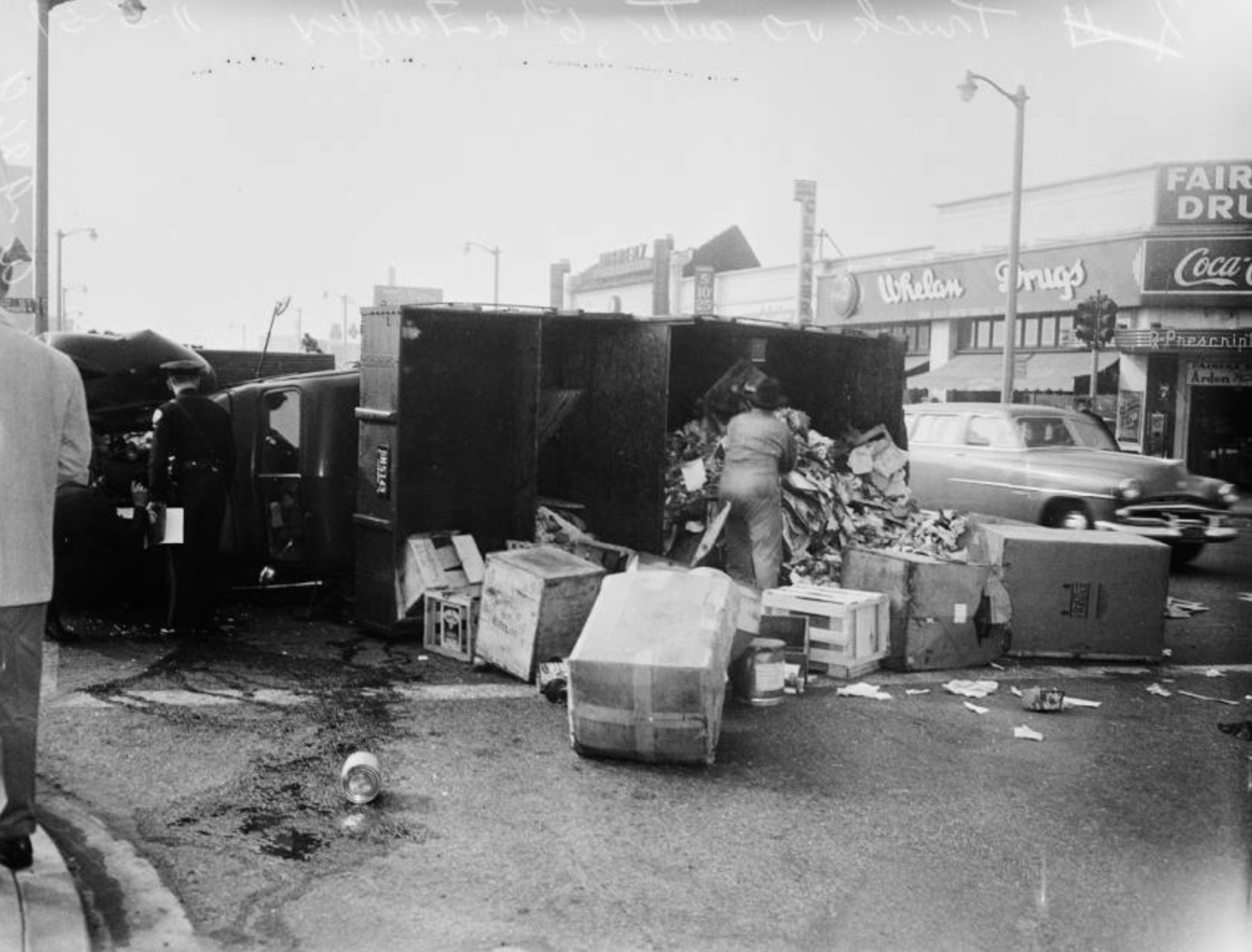 Truck accident at 6th Street and Fairfax Boulevard, 1951
