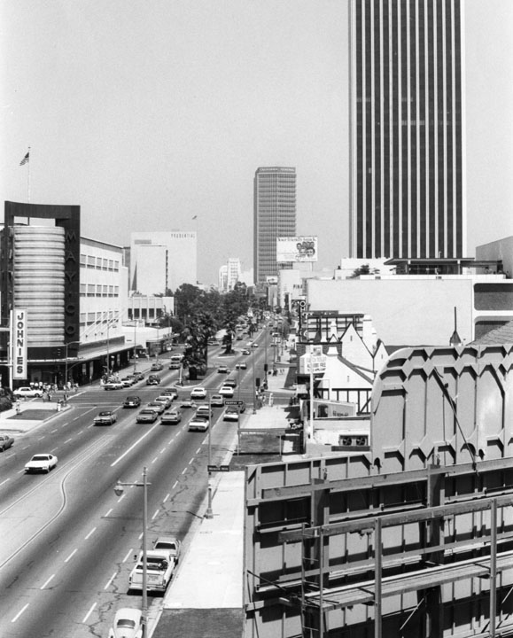 View looking east from Fairfax towards the Miracle Mile, 1972