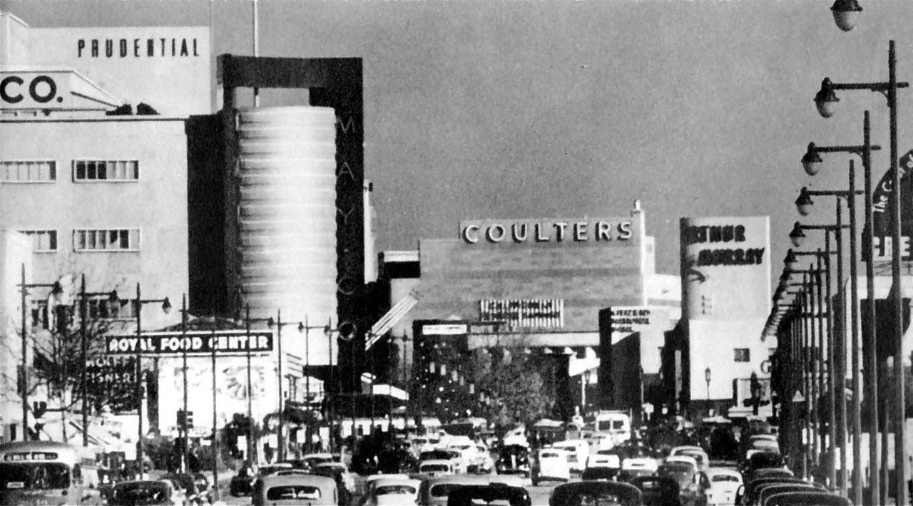 Wilshire Boulevard through the Fairfax Avenue intersection, circa 1940s