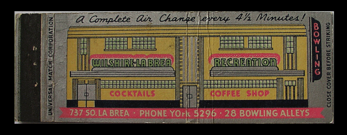 Wilshire-Labrea Recreation Center matchbook cover