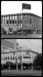 Seibu Department Store, circa 1962/Petersen Automotive Museum, 2012. Left photo: The Seibu department store opened in 1962 across from the May Company at Wilshire and Fairfax. This view is looking north along Fairfax with the May Company in the distance. Seibu closed in 1964 and the building later housed Orbach’s department store and is now the home of the Petersen Automotive Museum. (Photograph at right: Justin Fields.)