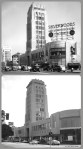 E. Clem Wilson Building, circa 1935 & 2013. Left photo: The E. Clem Wilson Building was built in 1929. Architects: Meyer & Holler. The building was in Art Deco (Zigzag) Moderne style. Photograph circa 1935. (Security Pacific National Bank Collection; Los Angeles Public Library.)